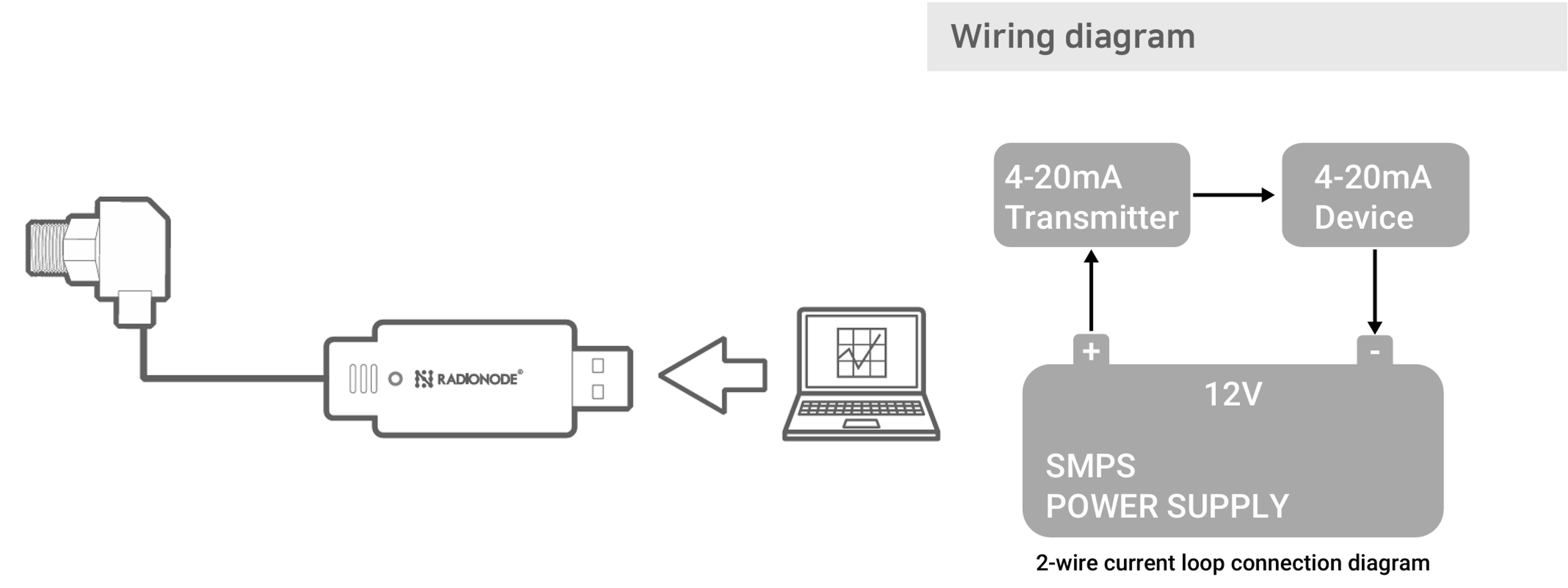 UA20-F는 USB 전원(5V)만으로 동작하며, 배터리나 별도의 전원 장치 없이 간편하게 4–20mA 출력 환경을 구성할 수 있습니다.
